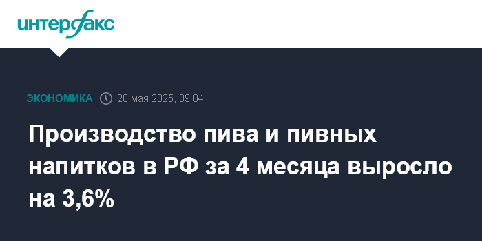 Производство пива и пивных напитков в РФ за 4 месяца выросло на 3,6%