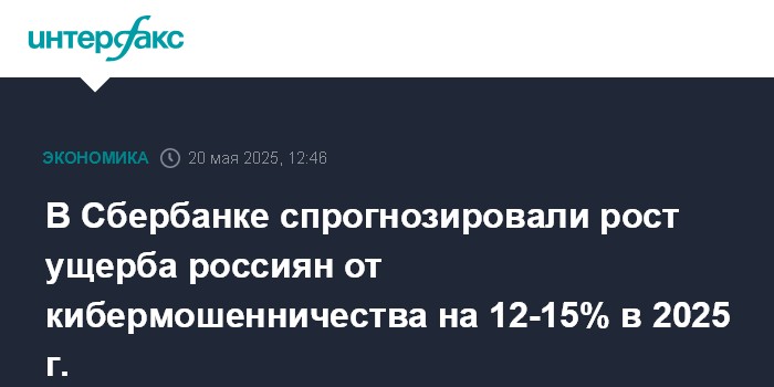 Москва. 20 мая. INTERFAX.RU - Ущерб граждан от кибермошенничества по итогам 2025 года в целом по России может возрасти до 330-340 млрд рублей, сообщил зампред правления Сбербанка Станислав Кузнецов журналистам во вторник.