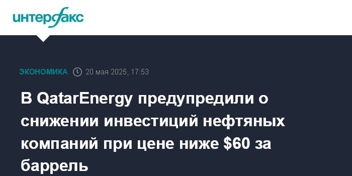 В QatarEnergy предупредили о снижении инвестиций нефтяных компаний при цене ниже $60 за баррель