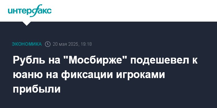 Москва. 20 мая. INTERFAX.RU - На "Московской бирже" во вторник рубль подешевел к юаню на фоне фиксации прибыли игроками после состоявшегося телефонного разговора президентов России и США Владимира Путина и Дональда Трампа.