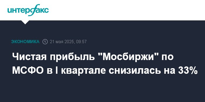 Москва. 21 мая. INTERFAX.RU - "Московская биржа"в первом квартале 2025 года получила 12,979 млрд рублей чистой прибыли по МСФО, что на 33% меньше, чем в аналогичном периоде 2024 года (19,355 млрд рублей), сообщила торговая площадка.