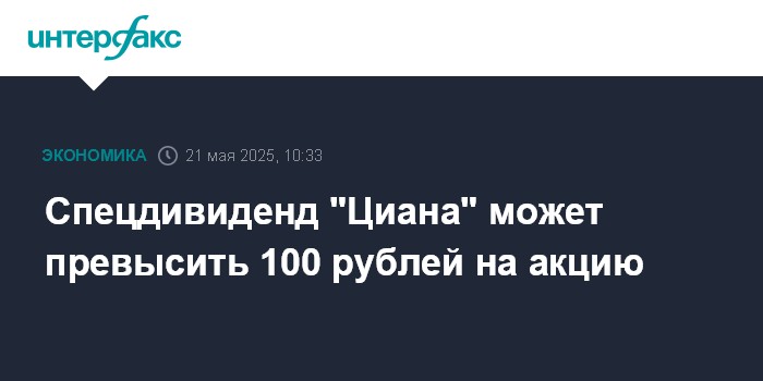 "Выплата специального дивиденда, размер которого по предварительным оценкам может превысить 100 рублей на акцию, в числе прочего, потребует одобрения совета директоров и акционеров МКПАО "Циан"", - сообщила группа.