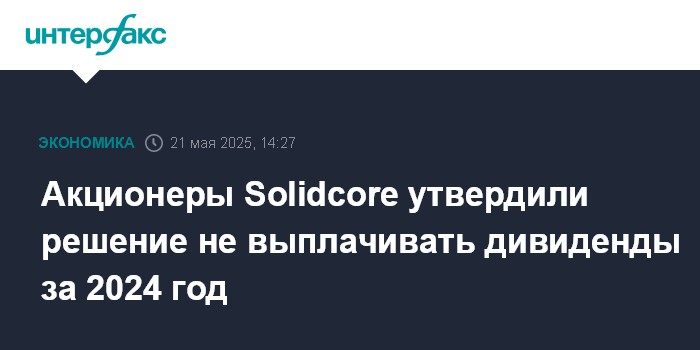 Акционеры Solidcore утвердили решение не выплачивать дивиденды за 2024 год