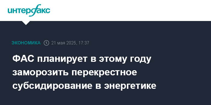 Москва. 21 мая. INTERFAX.RU - Федеральная антимонопольная служба рассчитывает в этом году добиться заморозки перекрестного субсидирования, сообщил на ПМЮФ начальник управления регулирования электроэнергетики службы Дмитрий Васильев.