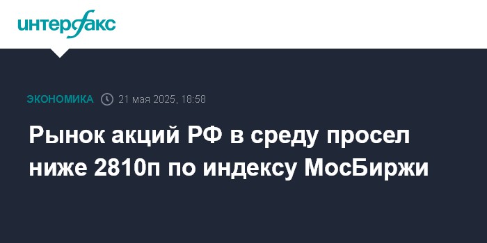 Рынок акций РФ в среду просел ниже 2810п по индексу МосБиржи