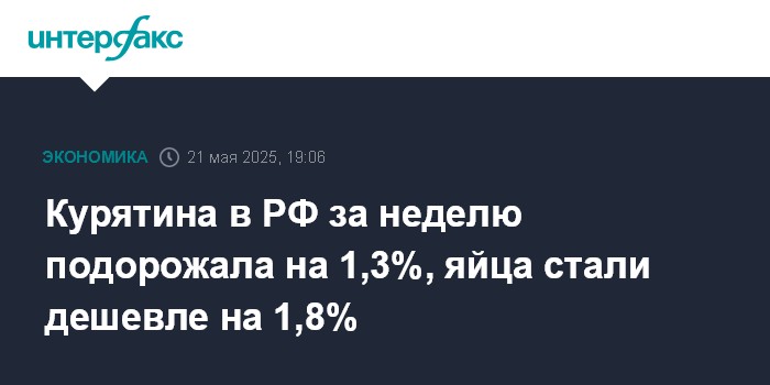 Курятина в РФ за неделю подорожала на 1,3%, яйца стали дешевле на 1,8%
