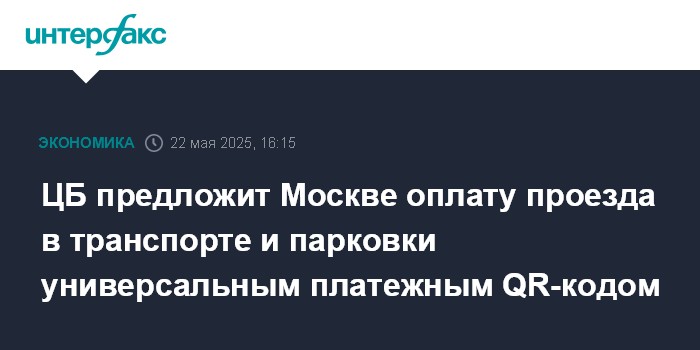 Москва. 22 мая. INTERFAX.RU - Банк России планирует в конце 2025 - начале 2026 года предложить Департаменту транспорта Москвы подключиться к платформе цифрового рубля для оплаты проезда и парковки универсальным платежным QR-кодом, сообщила зампред ЦБ Зульфия Кахруманова на круглом столе "Метро как площадка для тестирования новых технологий для всей страны".