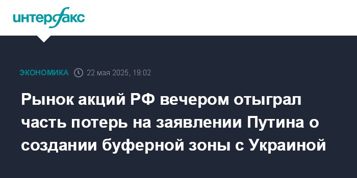 Рынок акций РФ вечером отыграл часть потерь на заявлении Путина о создании буферной зоны с Украиной