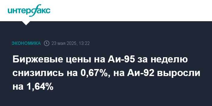 Биржевые цены на Аи-95 за неделю снизились на 0,67%, на Аи-92 выросли на 1,64%