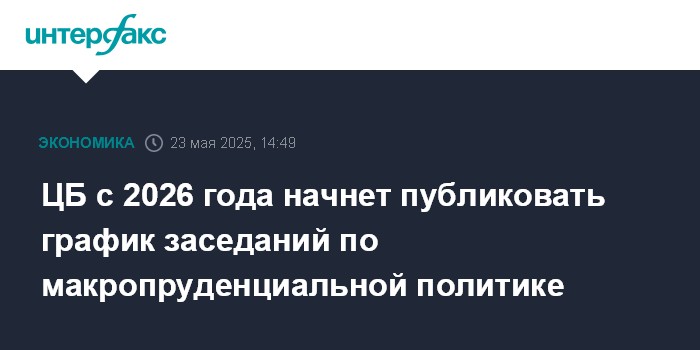 Москва. 23 мая. INTERFAX.RU - Банк России планирует с 2026 года начать публиковать график заседаний совета директоров по вопросам макропруденциальной политики, говорится в докладе регулятора.