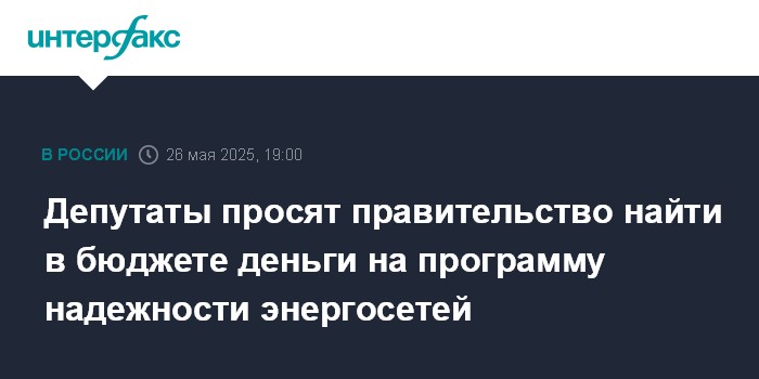 Депутаты просят правительство найти в бюджете деньги на программу надежности энергосетей