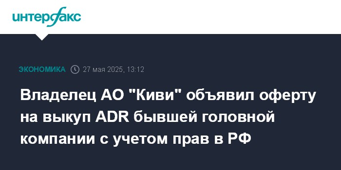 Владелец АО "Киви" объявил оферту на выкуп ADR бывшей головной компании с учетом прав в РФ