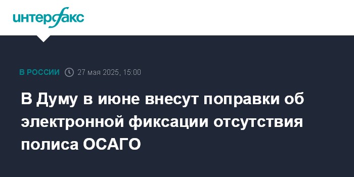 В Думу в июне внесут поправки об электронной фиксации отсутствия полиса ОСАГО