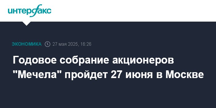 Москва. 27 мая. INTERFAX.RU - Годовое собрание акционеров "Мечела" состоится 27 июня в Москве, сообщила компания.