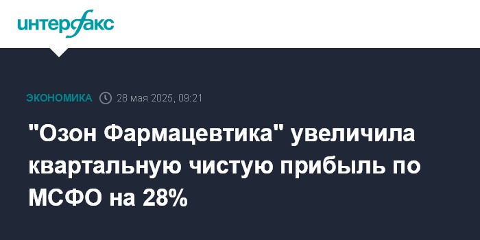 "Озон Фармацевтика" увеличила квартальную чистую прибыль по МСФО на 28%