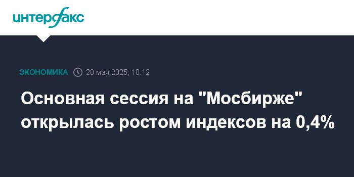 Москва. 28 мая. INTERFAX.RU - Российский рынок акций в начале торгов основной сессии на "Мосбирже" в среду продолжил коррекционный рост вторника после падения с середины прошлой недели из-за сомнений в скором мирном урегулировании военного конфликта вокруг Украины.