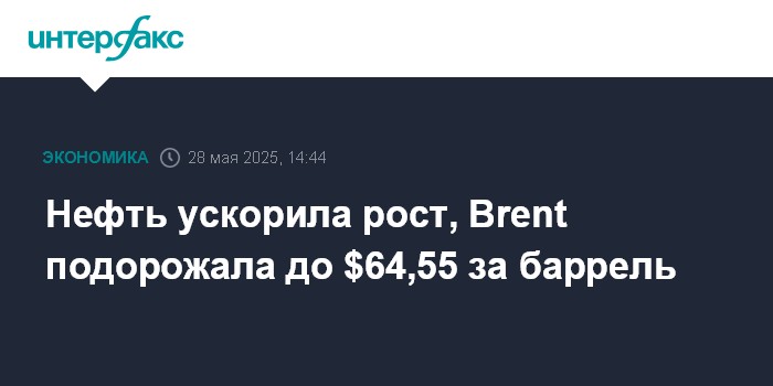 Нефть ускорила рост, Brent подорожала до $64,55 за баррель
