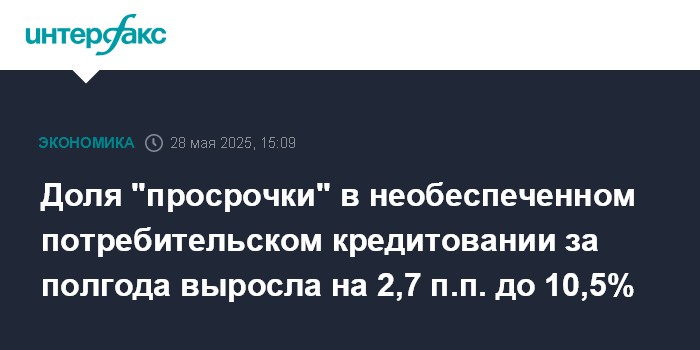 Доля "просрочки" в необеспеченном потребительском кредитовании за полгода выросла на 2,7 п.п. до 10,5%