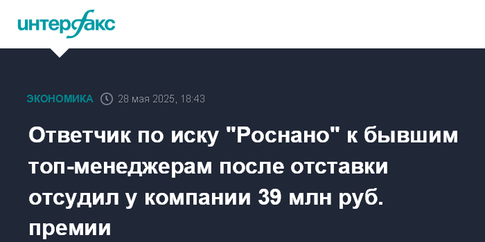 Ответчик по иску "Роснано" к бывшим топ-менеджерам после отставки отсудил у компании 39 млн руб. премии