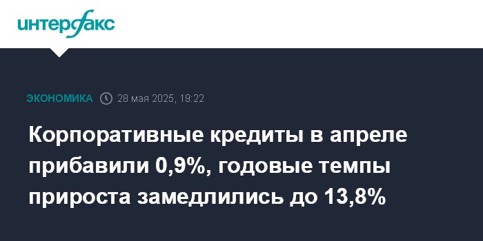 Корпоративные кредиты в апреле прибавили 0,9%, годовые темпы прироста замедлились до 13,8%