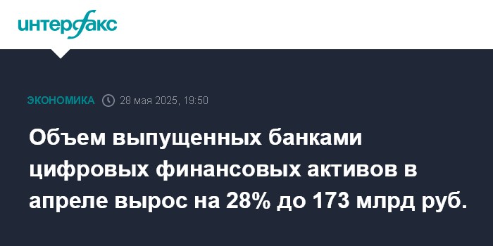 Объем выпущенных банками цифровых финансовых активов в апреле вырос на 28% до 173 млрд руб.