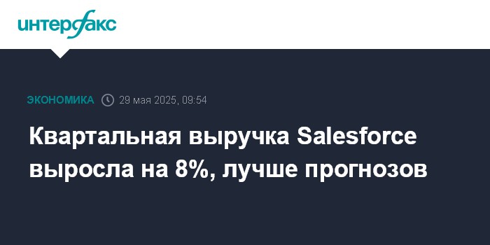 Москва. 29 мая. INTERFAX.RU - Американская Salesforce Inc., поставщик облачных корпоративных решений для взаимодействия с клиентами, в первом квартале 2026 финансового года увеличила выручку на 8%, лучше ожиданий рынка, что позволило компании улучшить годовой прогноз для этого показателя.
