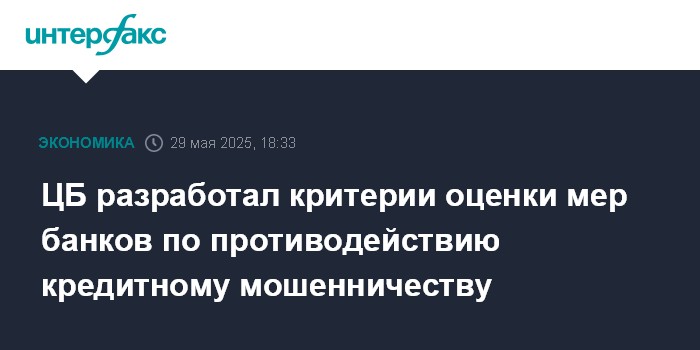 Москва. 29 мая. INTERFAX.RU - Банк России разработал критерии оценки эффективности мер банков по борьбе с кредитным мошенничеством, а также установил порядок подачи банком ходатайства в ЦБ о проведении регулятором оценки соответствия этим критериям. Проект указания подготовлен в соответствии с нормами закона, вводящего "период охлаждения" по потребительским кредитам и опубликован на сайте регулятора.