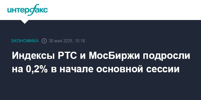 Индексы РТС и МосБиржи подросли на 0,2% в начале основной сессии