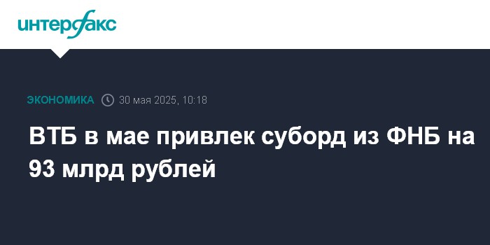 ВТБ в мае привлек суборд из ФНБ на 93 млрд рублей