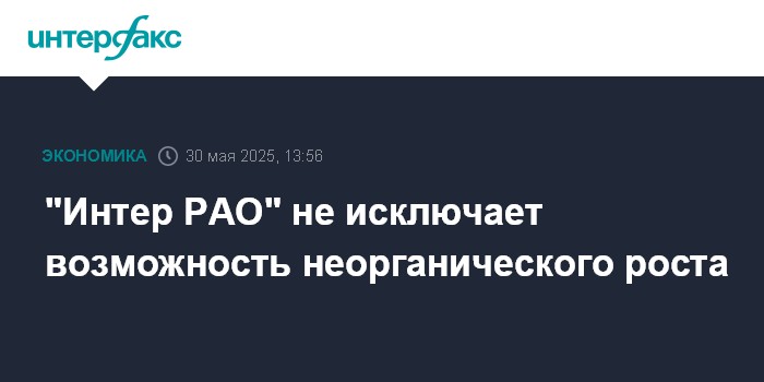 Москва. 30 мая. INTERFAX.RU - ПАО "Интер РАО" не исключает возможность неорганического роста, всегда рассматривает возможность M&A, сообщил член правления компании Александр Киселев на телефонной конференции с инвесторами.