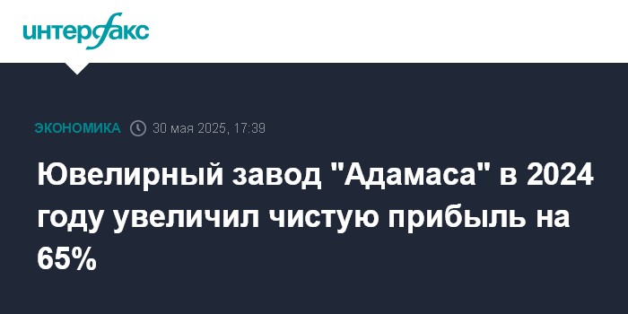 Ювелирный завод "Адамаса" в 2024 году увеличил чистую прибыль на 65%