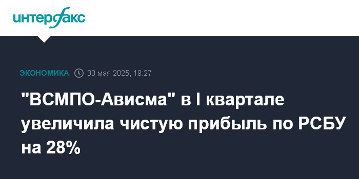 Москва. 30 мая. INTERFAX.RU - ПАО "Корпорация "ВСМПО-Ависма" в январе-марте 2025 года увеличила чистую прибыль по РСБУ на 28,2% по сравнению с аналогичным периодом прошлого года - до 5,895 млрд рублей, говорится в бухгалтерской отчетности компании.