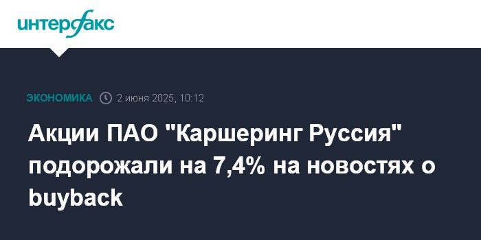 Акции ПАО "Каршеринг Руссия" подорожали на 7,4% на новостях о buyback