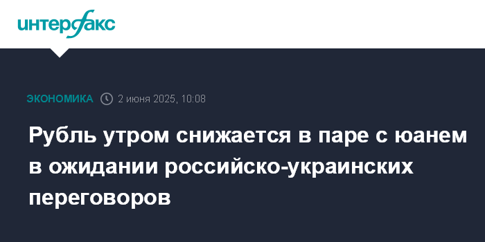 Москва. 2 июня. INTERFAX.RU - Китайский юань укрепился на Московской бирже утром в понедельник, рубль опустился в рамках коррекции после роста в предыдущие дни и в ожидании российско-украинских переговоров.