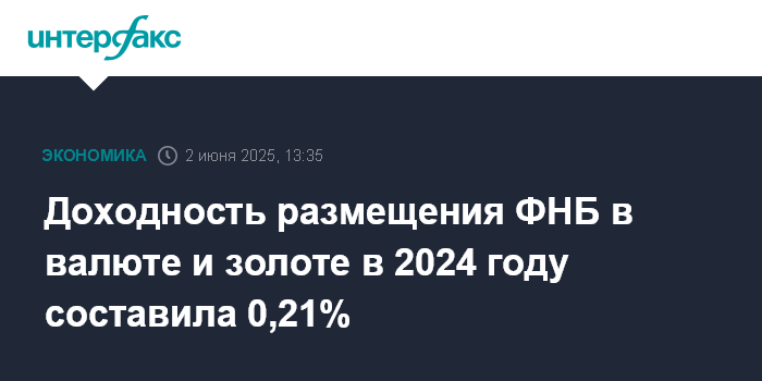 Доходность размещения ФНБ в валюте и золоте в 2024 году составила 0,21%