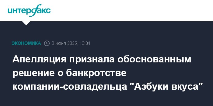 Апелляция признала обоснованным решение о банкротстве компании-совладельца "Азбуки вкуса"