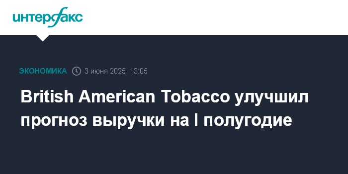 Москва. 3 июня. INTERFAX.RU - Табачный концерн British American Tobacco (BAT) повысил прогноз выручки на первое полугодие 2025 года, отметив, что динамика его продаж в этом году пока немного превосходит ожидания.