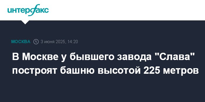 В Москве у бывшего завода "Слава" построят башню высотой 225 метров