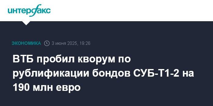 ВТБ пробил кворум по рублификации бондов СУБ-Т1-2 на 190 млн евро