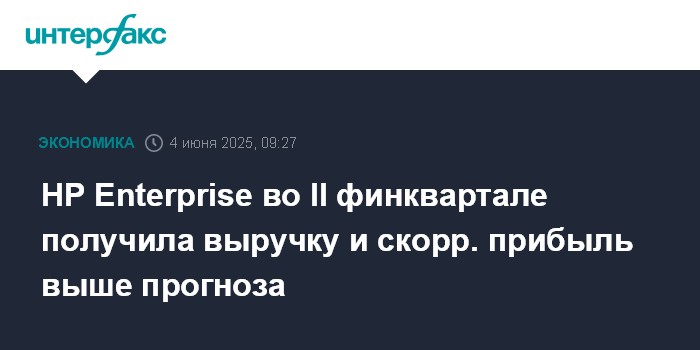 Москва. 4 июня. INTERFAX.RU - Американская Hewlett Packard Enterprise (HPE), поставщик решений в сфере IT и телекоммуникационных услуг, во втором квартале 2025 финансового года получила чистый убыток, но дала сильный прогноз на текущий период.