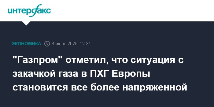 "Газпром" отметил, что ситуация с закачкой газа в ПХГ Европы становится все более напряженной