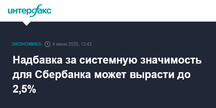 Москва. 4 июня. INTERFAX.RU - Надбавка к нормативу достаточности капитала Сбербанка после обновления методики определения системно значимых кредитных организаций (СЗКО) может вырасти с 1% до 2,5%, банк учтет это при подготовке новой трехлетней стратегии (2027-2029 годы), сообщил "Интерфаксу" зампред правления, финдиректор банка Тарас Скворцов в кулуарах ЦИПР-2025.