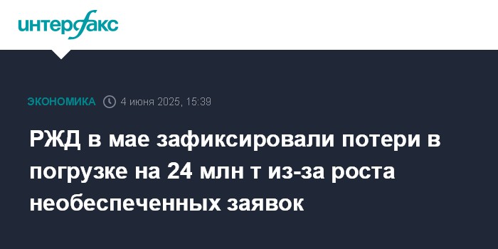 РЖД в мае зафиксировали потери в погрузке на 24 млн т из-за роста необеспеченных заявок
