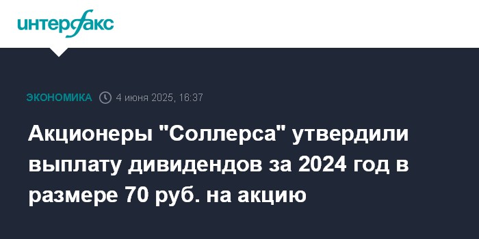 Акционеры "Соллерса" утвердили выплату дивидендов за 2024 год в размере 70 руб. на акцию