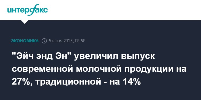 "Эйч энд Эн" увеличил выпуск современной молочной продукции на 27%, традиционной - на 14%