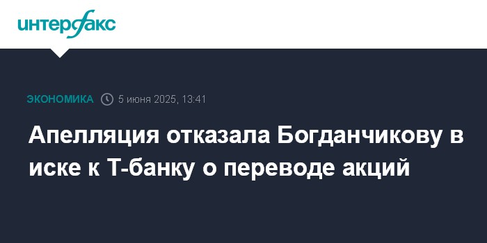 Апелляция отказала Богданчикову в иске к Т-банку о переводе акций