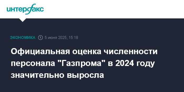 Официальная оценка численности персонала "Газпрома" в 2024 году значительно выросла