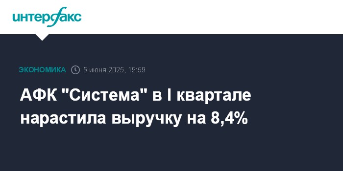 Москва. 5 июня. INTERFAX.RU - ПАО АФК "Система" по итогам I квартала 2025 года получило консолидированную выручку в 295,7 млрд рублей, что на 8,4% превышает показатель аналогичного периода 2024 года, сообщила корпорация.