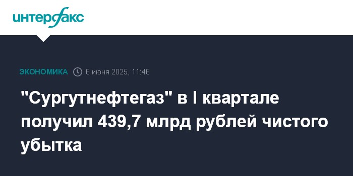 Москва. 6 июня. INTERFAX.RU - "Сургутнефтегаз" в первом квартале 2025 года получил 439,7 млрд рублей чистого убытка против прибыли 268,5 млрд рублей годом ранее, сообщается в отчете компании по РСБУ.