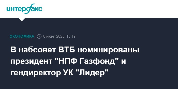 В набсовет ВТБ номинированы президент "НПФ Газфонд" и гендиректор УК "Лидер"